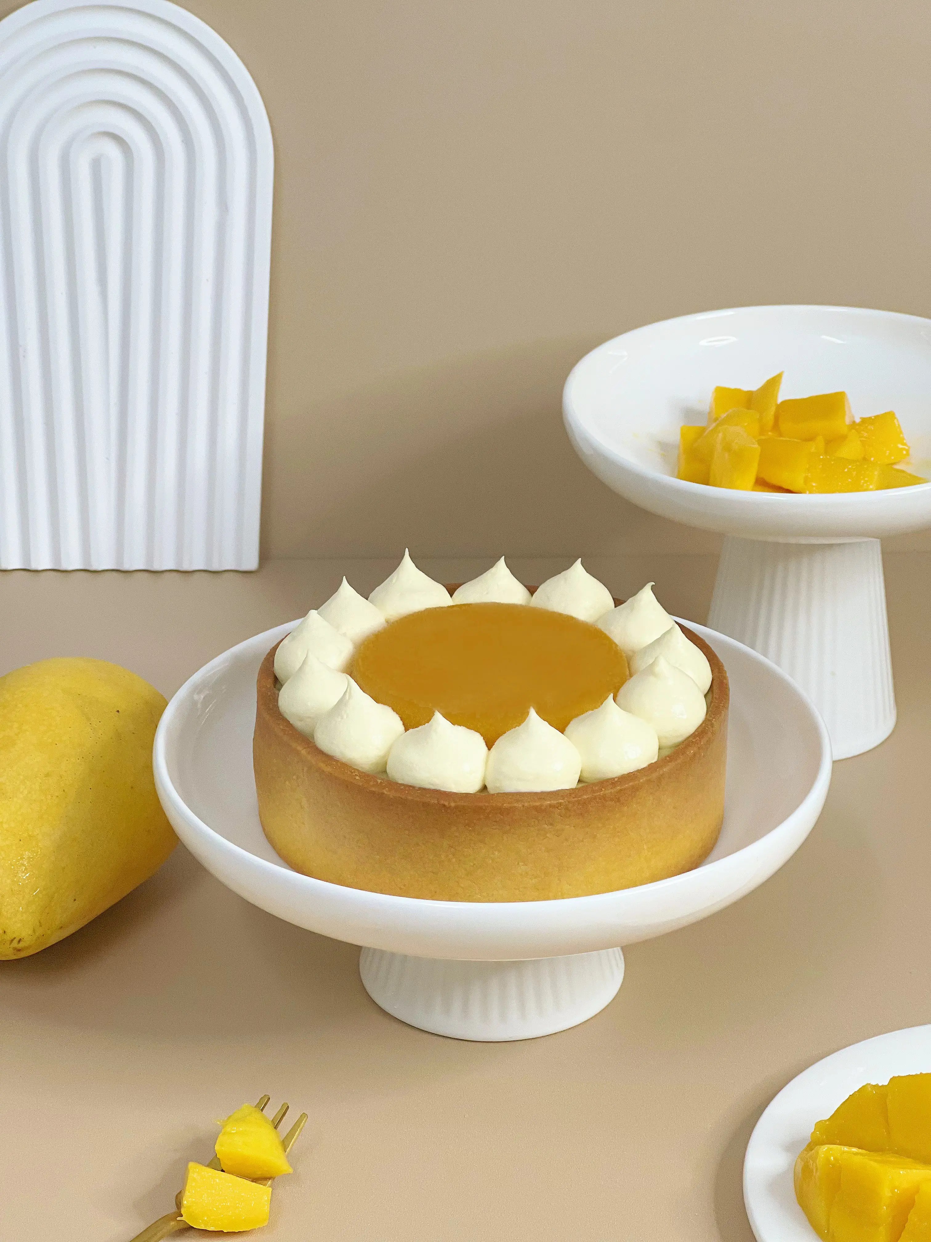 - 撻面放上芒果蓉果凍,為芝士餡帶來清新味道